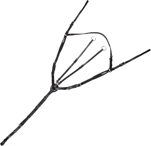 Napierśnik skórzany skokowy dopinany do przystuł oraz popręgu. Posiada krótkie elastyczne wstawki z gumy po obu stronach. Wykonany z wysokiej jakości skóry.
