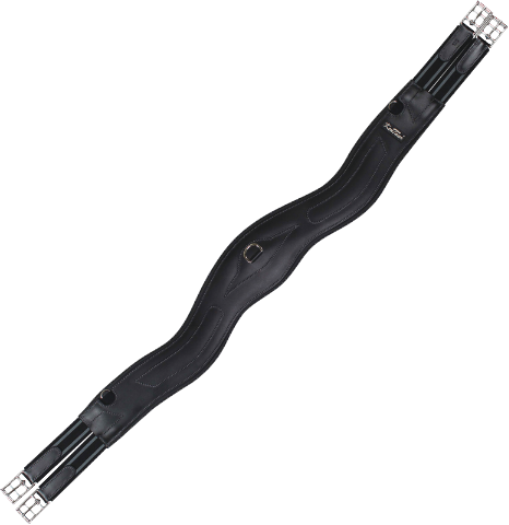 Wykonany z wysokiej jakości, miękkiej skóry popręg o anatomicznym kształcie. Gumy po obu stronach. Sprzączki ze stali nierdzewnej z rolkami. Posiada 3 uchwyty do podczepienia wodzy pomocniczych (dwa po bokach i jeden po środku). Produkowany w Czechach.
