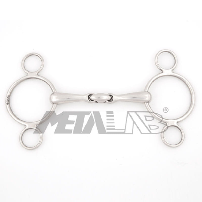 Wędzidło wielokrążek podwójnie łamane, pełne, z łącznikiem anatomicznym ze stali nierdzewnej. Ścięgierz typu Magic System eliminuje efekt "dziadka do orzechów" dzięki czemu jest bardziej przyjazny dla końskiego pyska.
