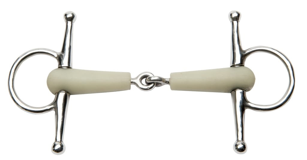 Wędzidło wykonane z tworzywa sztucznego, 1 x łamane. Ścięgierz o posmaku jabłkowym. Czanki o długości 12 cm dla delikatniejszego oddziaływania na konia.