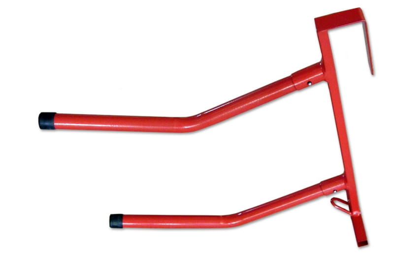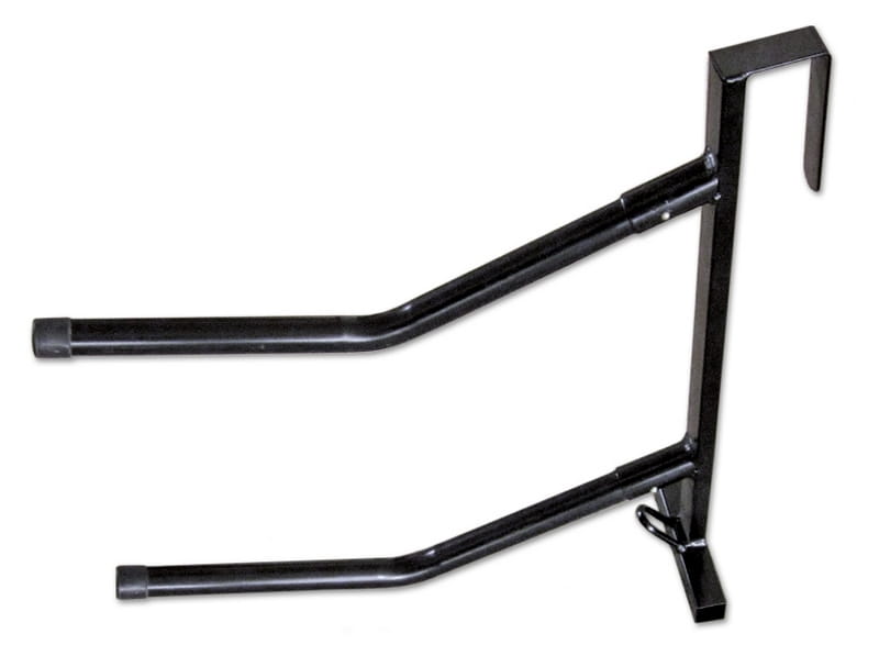Składany, dwuramienny, wieszak na dwa siodła i ogłowie. Metalowy, pokryty tworzywem.